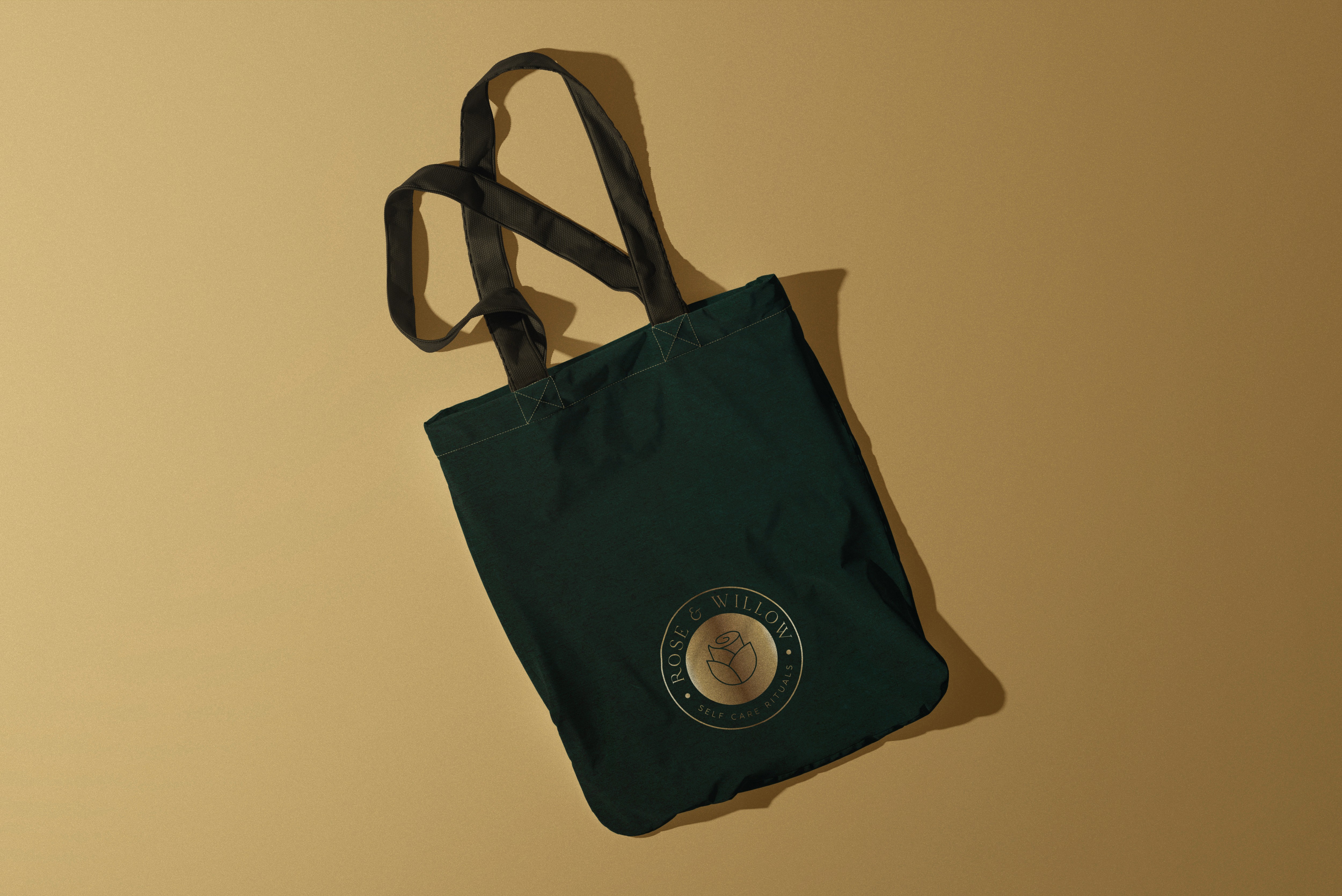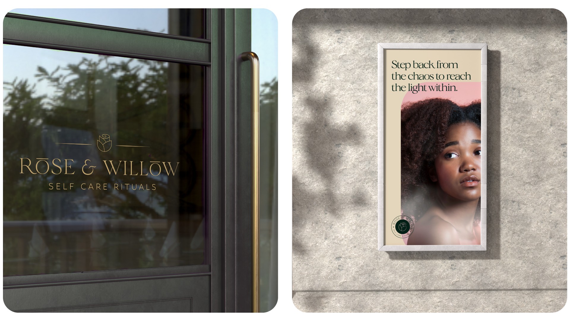 The logomark blends organic elements with refined typography — harmony between nature and self-care.